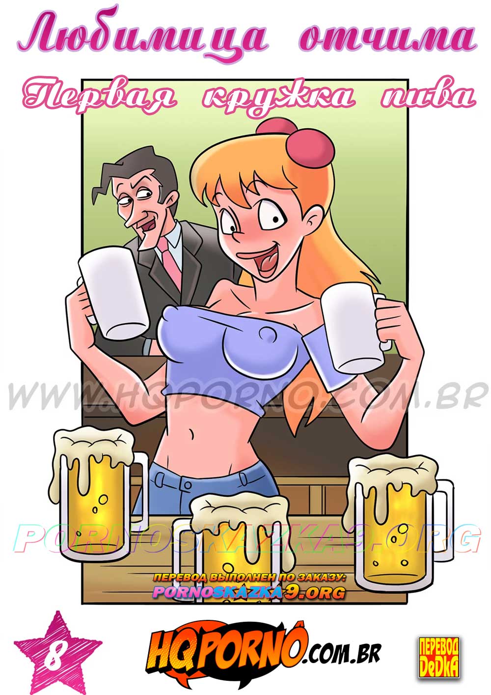 Порно комикс «Любимица отчима. Часть 8. Первая кружка пива.» Карен думала, что пиво невкусный напиток, но когда она впервые решила попробовать пиво, то оно так ей понравилось, что она напилась до неприличия. А потом наступили увлекательные последствия…
